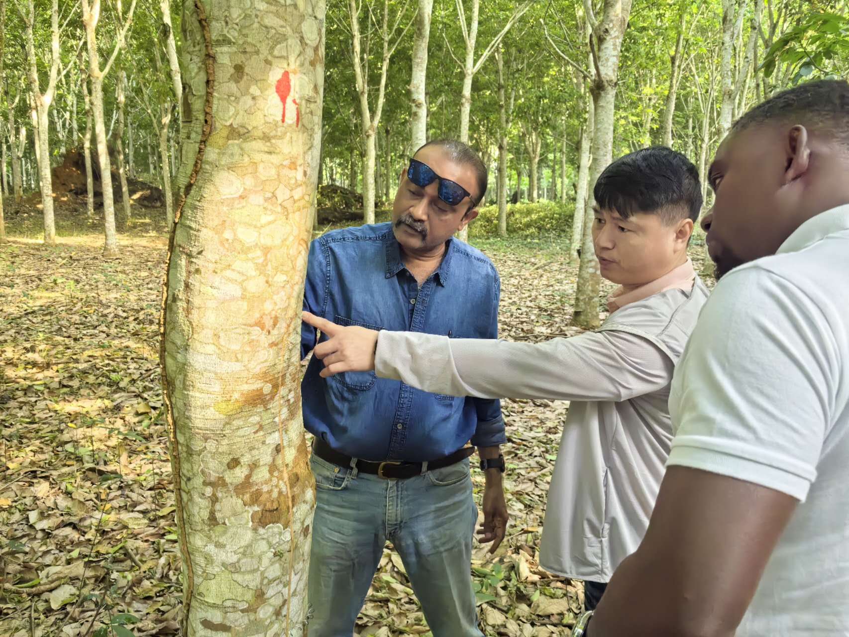 在喀麦隆种植园的每一天都充满了新奇和挑战,但正是这种异国他乡的体验,让我更加深刻地了解文化的多样性和世界的广阔,行万里路与读万卷书有异曲同工、殊途同归的作用,能够让我增长见识,开阔眼界。何兴辉查看当地胶工割胶情况。 “何总,何总,你快看看我是不是遭遇电信诈骗了?”有一天,同为海南橡胶赴非专家团成员的虞海浓神情
