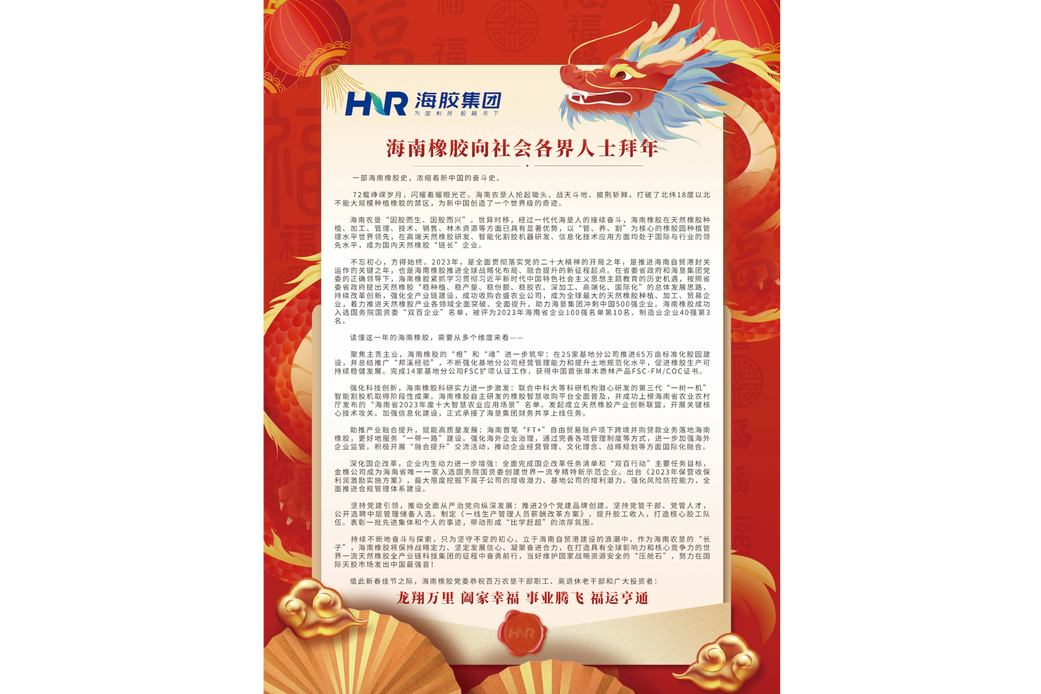 海南橡胶向社会各界人士拜年