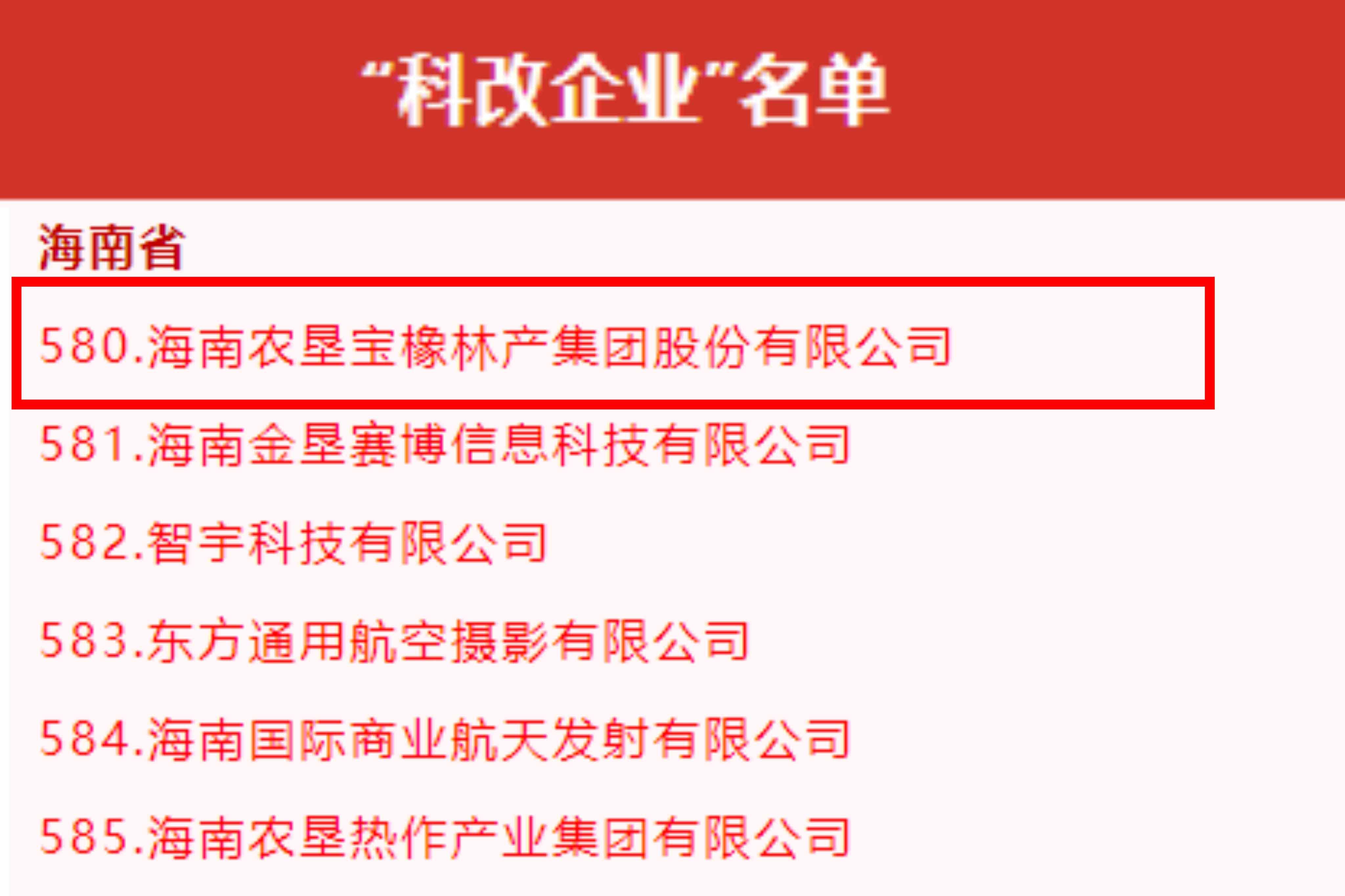 日前,国务院国资委网站公布最新“科改企业”名单,海南省共有6家企业上榜。其中,海南橡胶下属子公司海南农垦宝橡林产集团股份有限公司、海南金垦赛博信息科技有限公司、海南农垦热作产业集团有限公司等3家海垦企业入选名单。