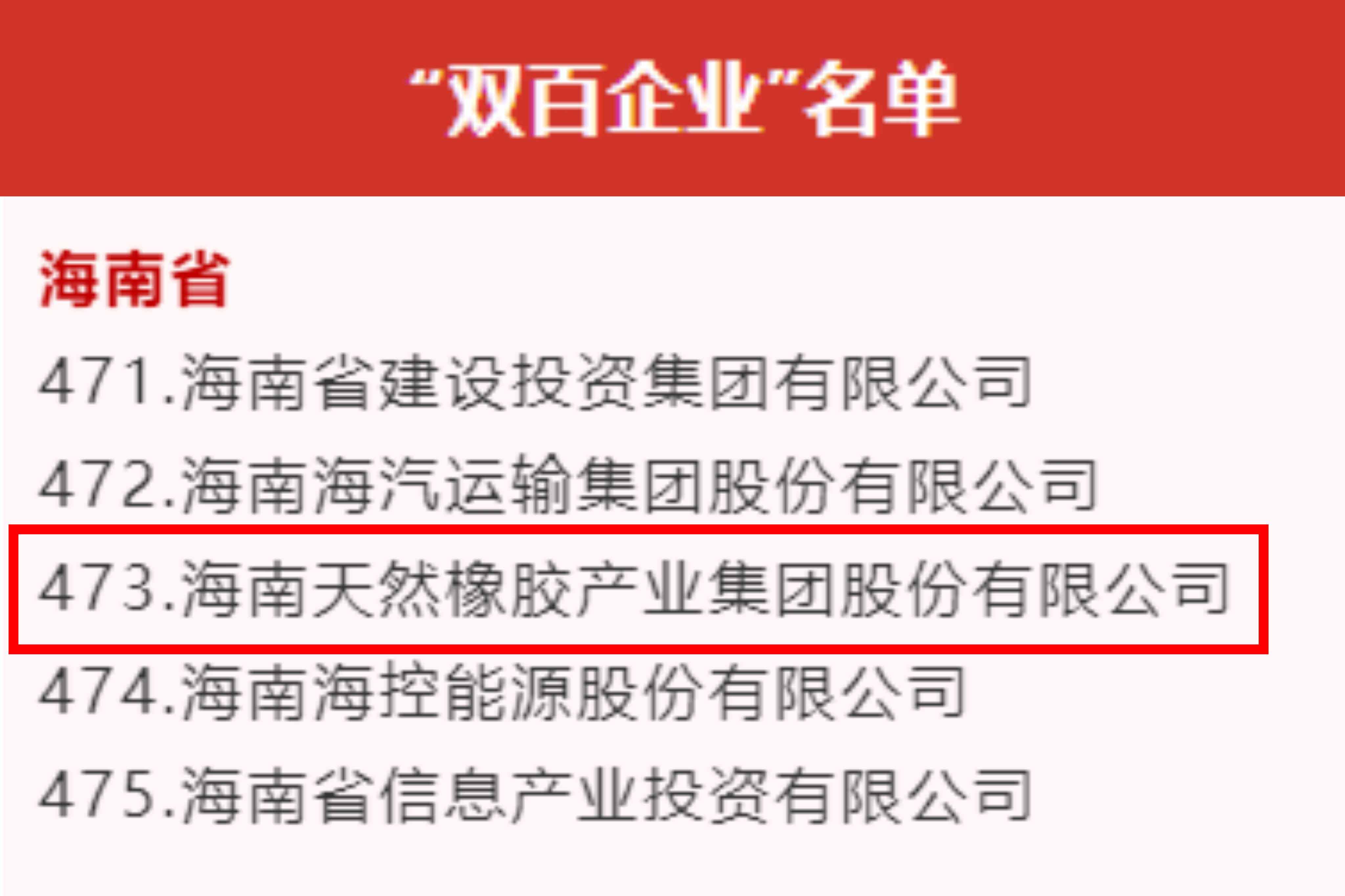 日前,国务院国资委网站公布最新“双百企业”名单,海南共有5家国有企业上榜,海南橡胶入选名单。