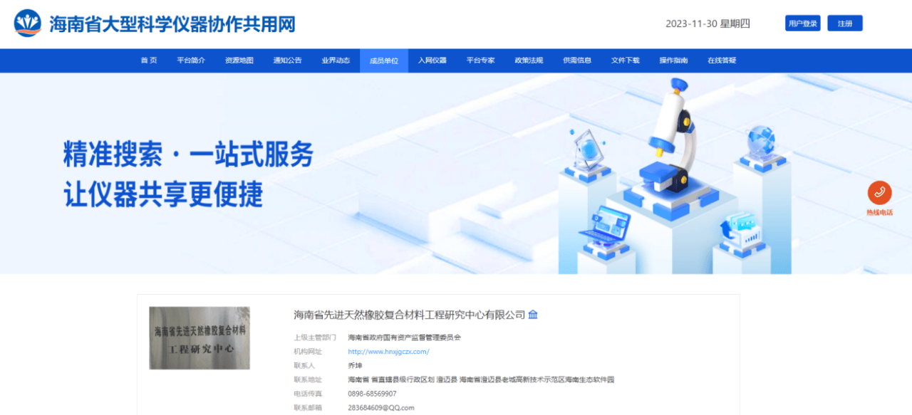 近日,海南橡胶下属全资子公司海南省先进天然橡胶复合材料工程研究中心有限公司(简称“工程中心”)经专家评审、省厅审定等程序,获批为大型科学仪器协作共用平台(简称“大仪平台”)新增成员单位 。