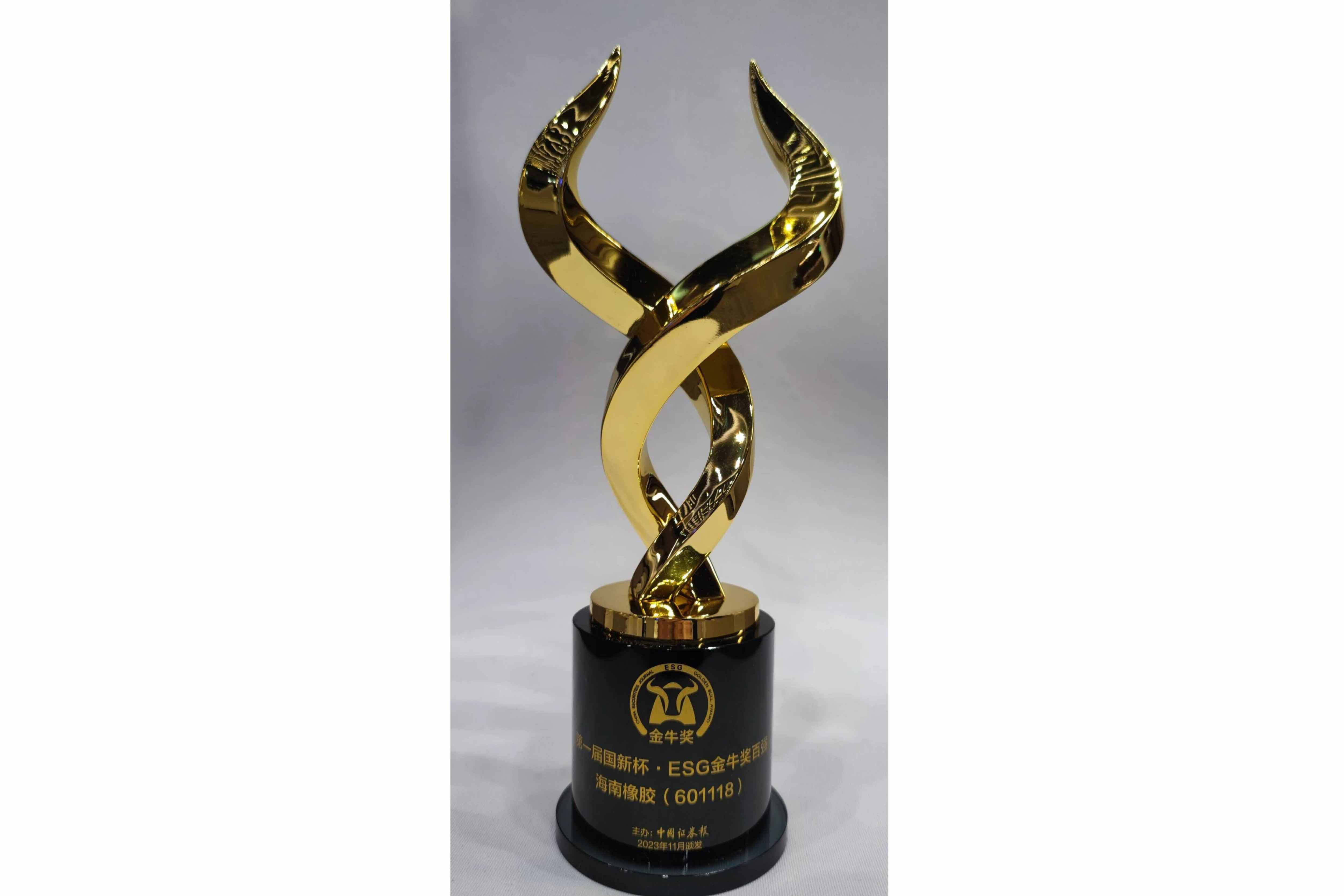 11月24日,由中国证券报、中国国新控股有限责任公司、南通市人民政府联合主办的2023金牛企业可持续发展论坛暨第一届国新杯·ESG金牛奖颁奖典礼在江苏南通举行,海南橡胶荣获“第一届国新杯·ESG金牛奖百强”奖项,是海南地区唯一荣获该奖项的公司。