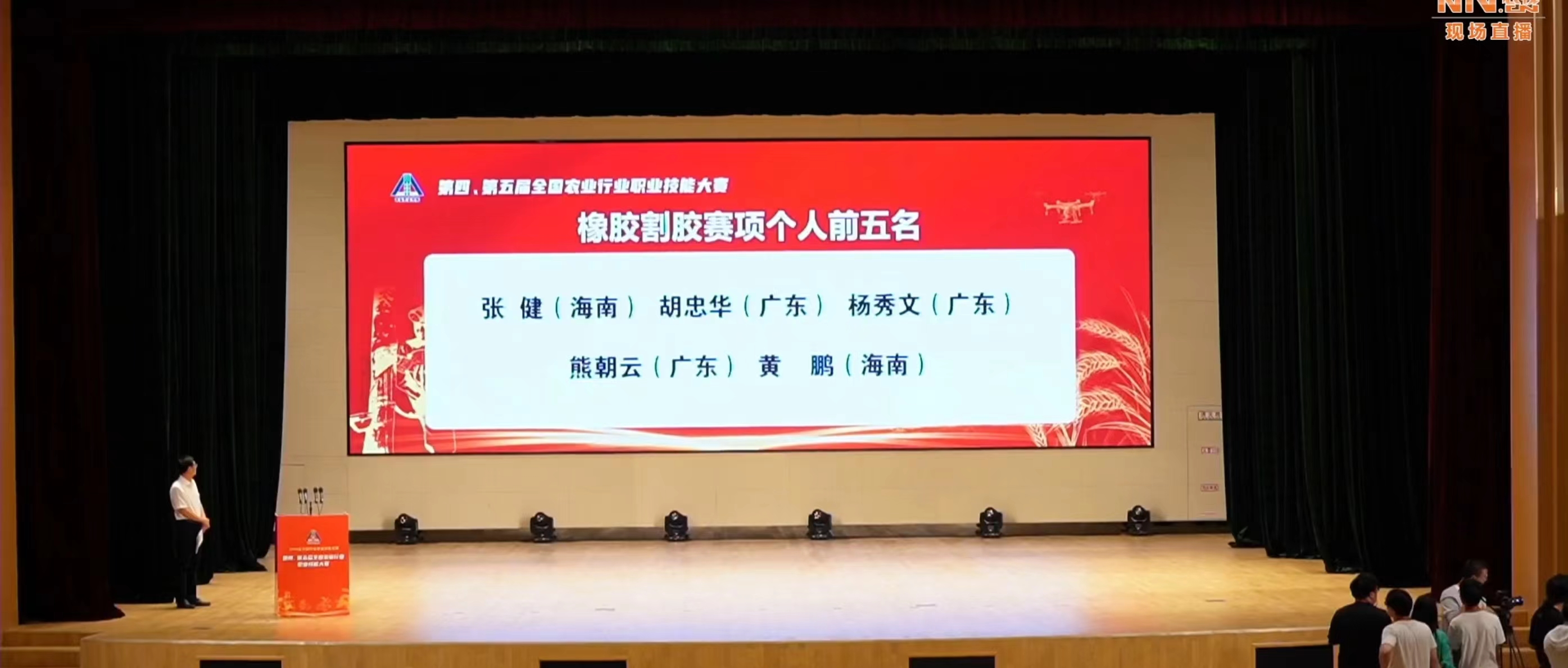 海南橡胶邦溪分公司胶工张健、海南橡胶龙江分公司胶工黄鹏分别荣获第四届全国农业行业职业技能大赛橡胶割胶工技能竞赛第一名和第五名,其中,张健还被授予“全国技术能手”称号。